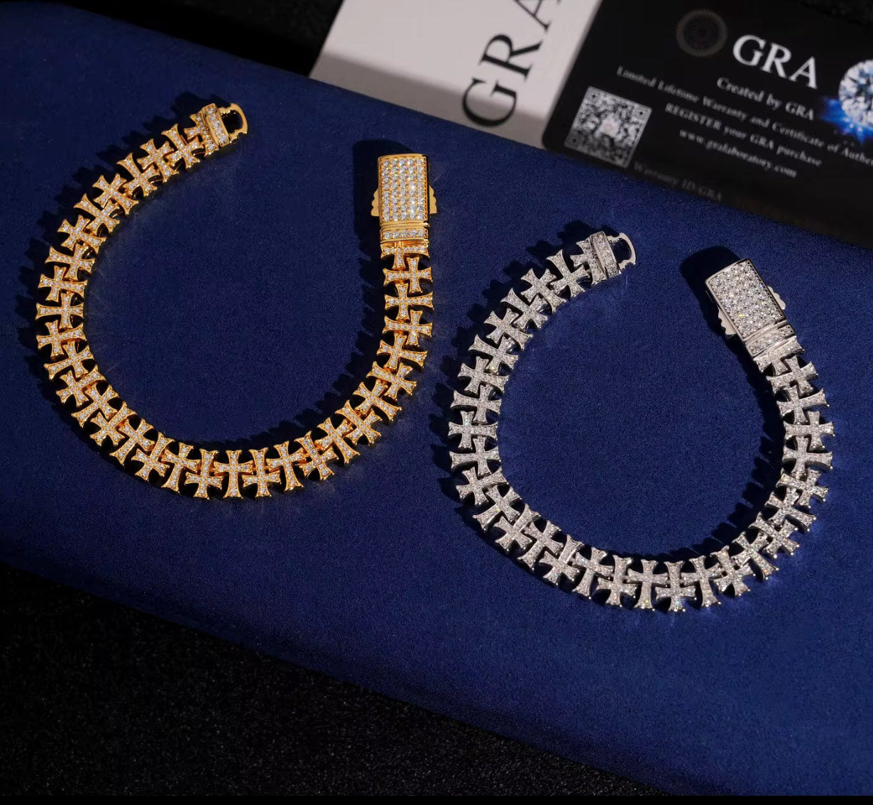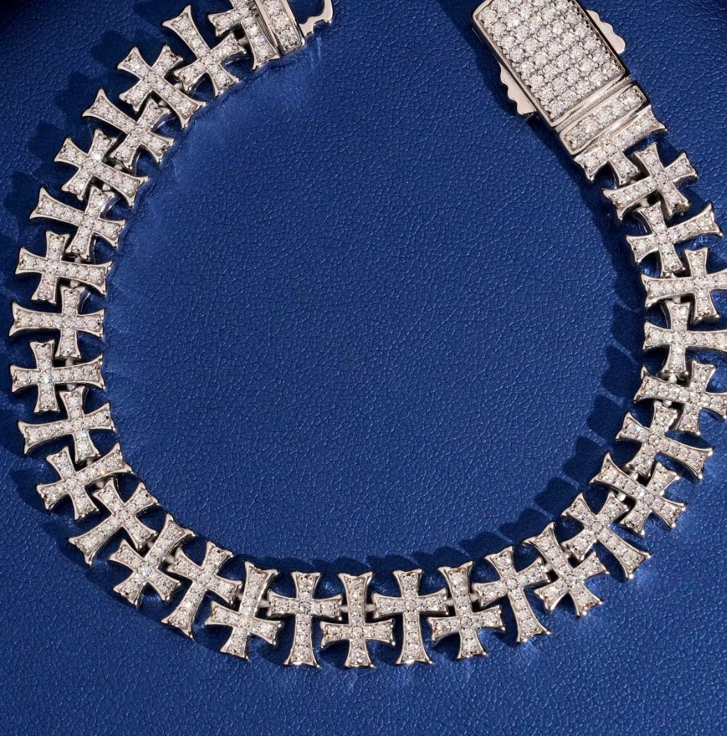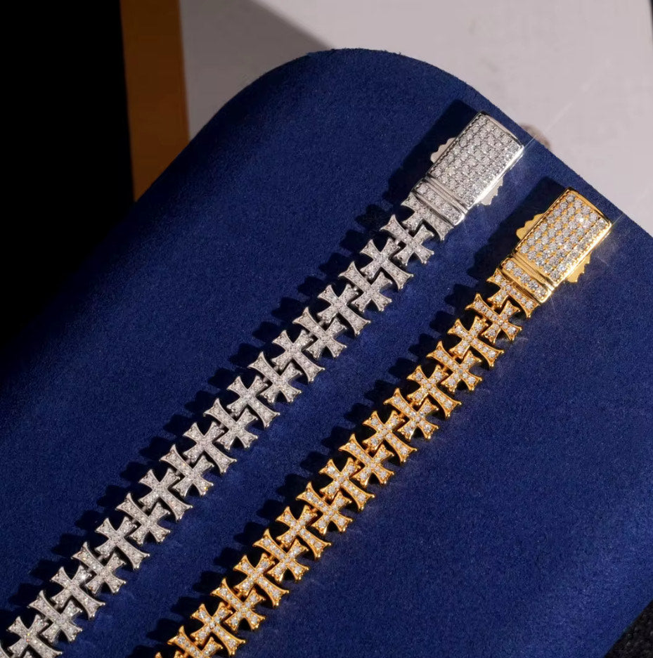 This Moissanite Cross Charms Bracelet offers a refined blend of elegance and symbolism. Crafted with brilliant moissanite stones, each cross charm reflects exceptional brilliance and durability, ensuring lasting sparkle and strength. Designed for those who appreciate both meaningful jewelry and expert craftsmanship, this bracelet makes a sophisticated statement, perfect for everyday wear or special occasions.