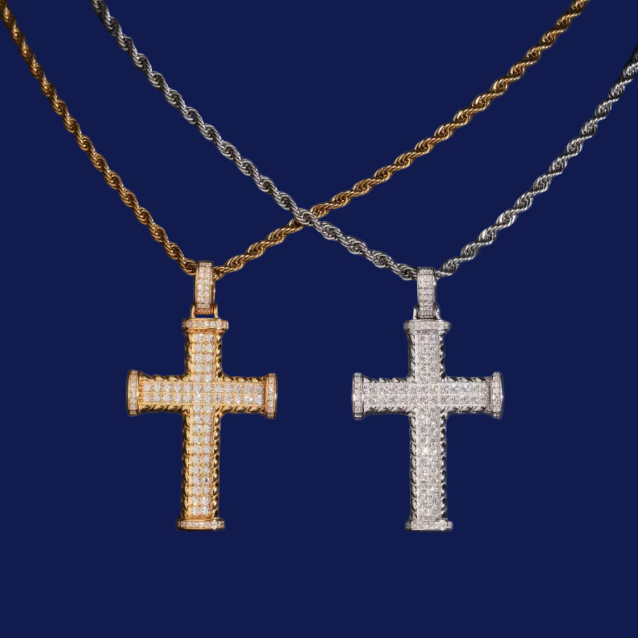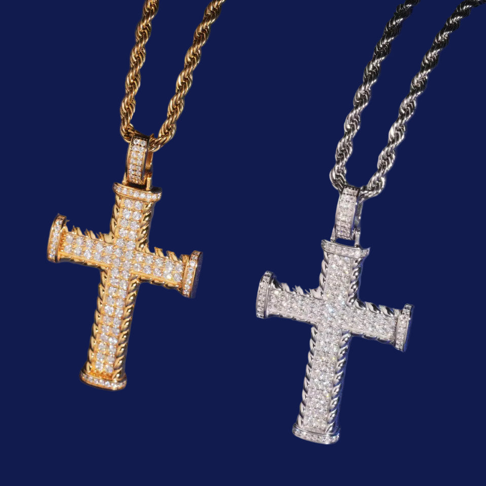 Elevate your style and express your faith with our Moissanite Cross Pendant, a perfect fusion of elegance and symbolism. Expertly crafted, this pendant features radiant, lab-created moissanite stones that rival diamonds in brilliance—capturing light with every movement.