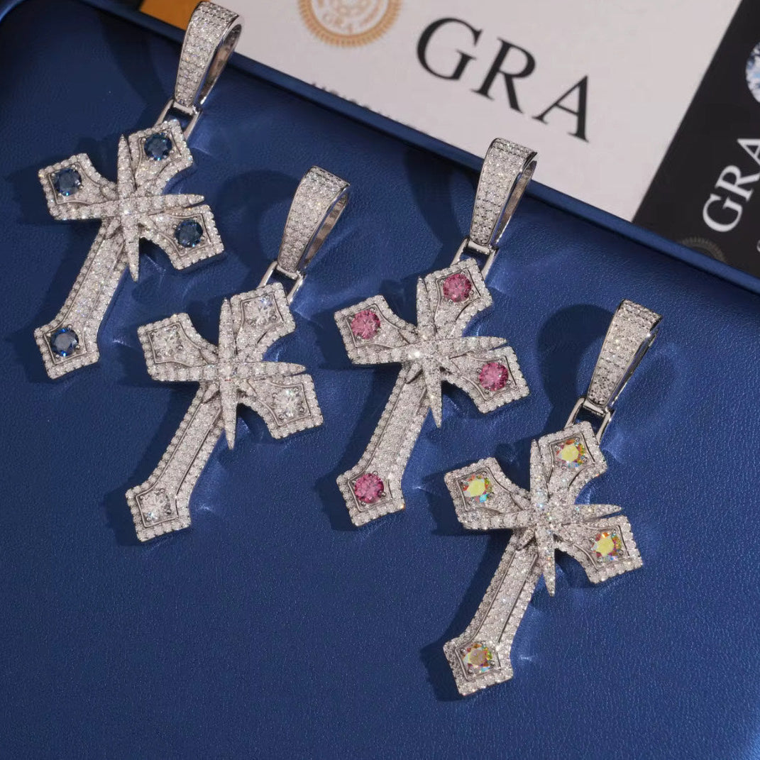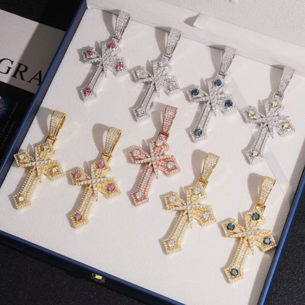 Hand-set with VVS1 moissanite stones, this pendant delivers unmatched fire and sparkle — outshining diamonds in brilliance and durability. Crafted in 925 sterling silver (or 14K gold plating, if applicable), it’s designed to catch light from every angle while maintaining everyday wearability.
